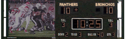 captions, sponsor panels, radio control, team names, digits, clock,